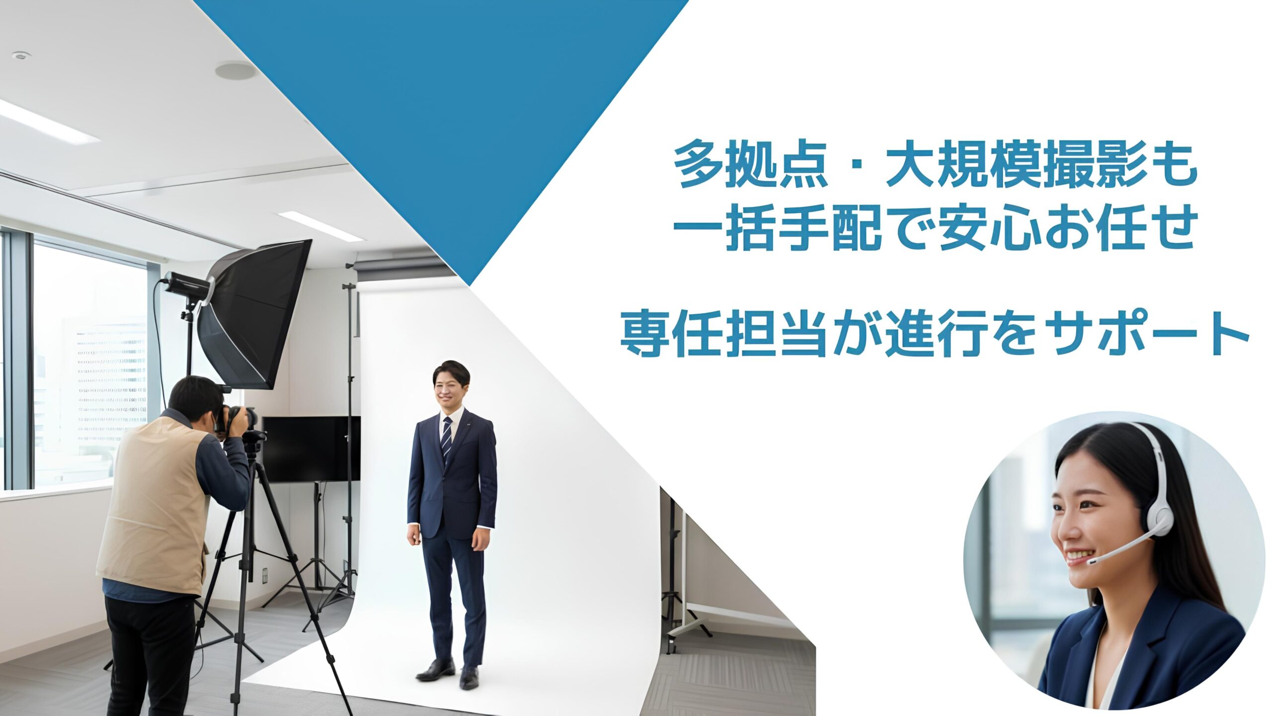 専任担当が条件に合わせた実現方法の提案、準備事項の共有、進行・品質管理まで一貫して対応。初めての撮影手配でも安心してお任せください